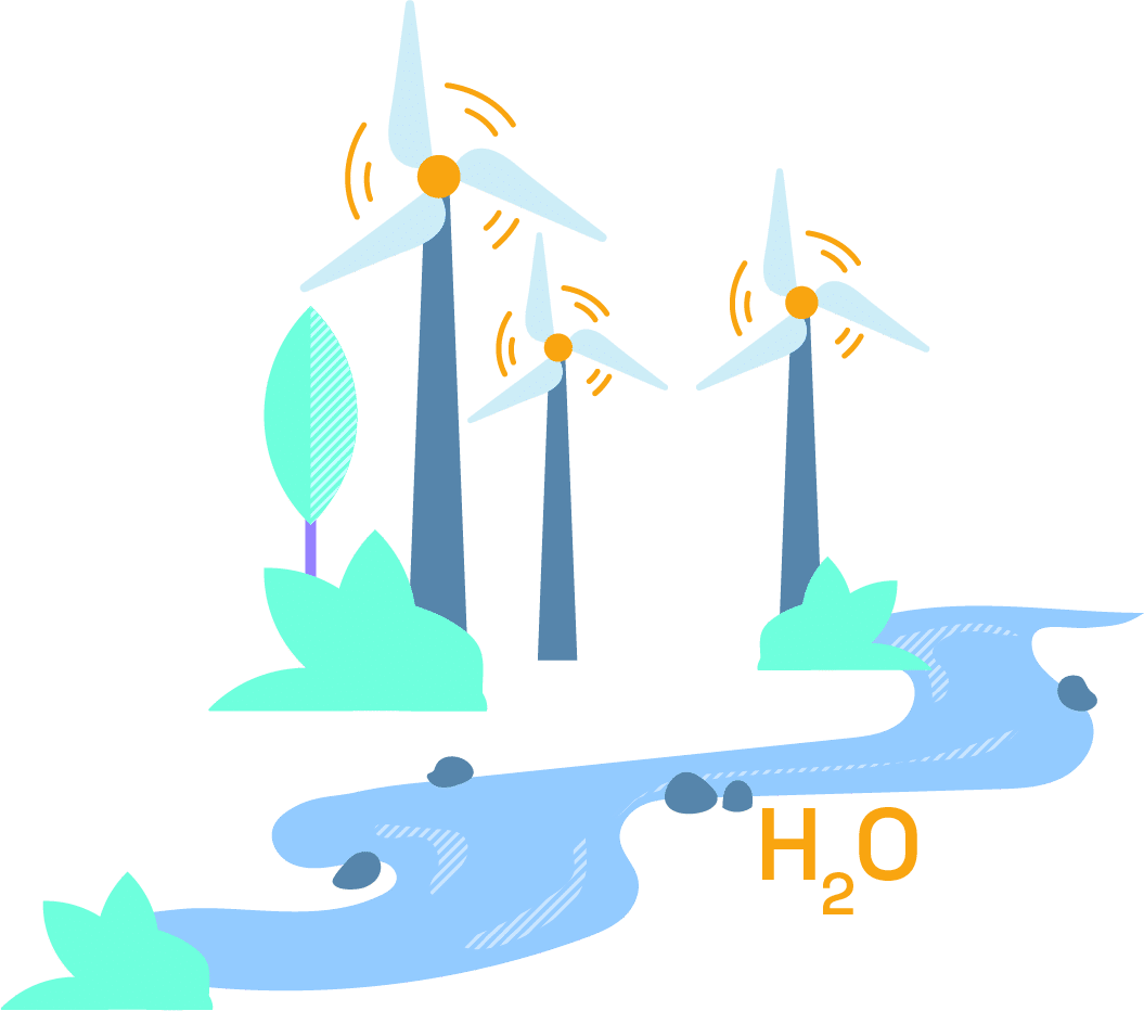 We produce hydrogen using only water and 100% renewable electricity. The result: almost no CO₂ emissions in production or use, making our hydrogen a cornerstone for decarbonising heavy transport and industry.